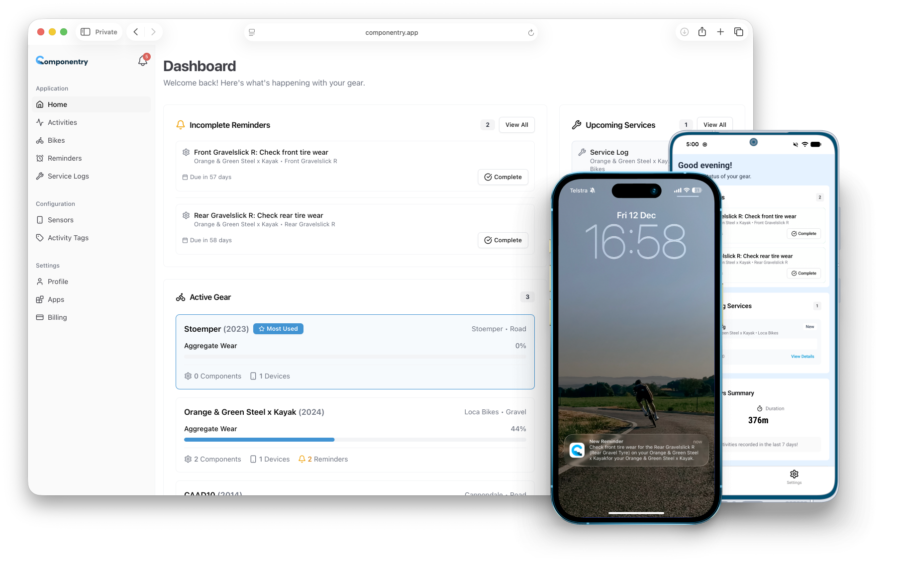 Componentry is a maintenance and tracking app that transforms how you care for your bicycle.